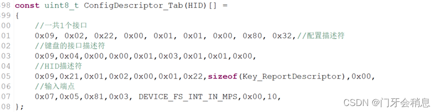 配置描述符、接口描述符、端点描述符、HID描述符( USB键盘)的定义与实现