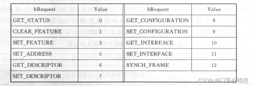 标准请求(bmRequestType中的D6-5为00)中又细分11中(bRequest)
