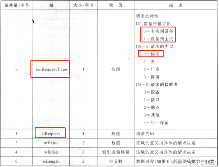 USB定义了8字节标准设备请求,主要用在设备的枚举过程,这8字节数据是在控制传输的建立过程通过默认端点0发出的。