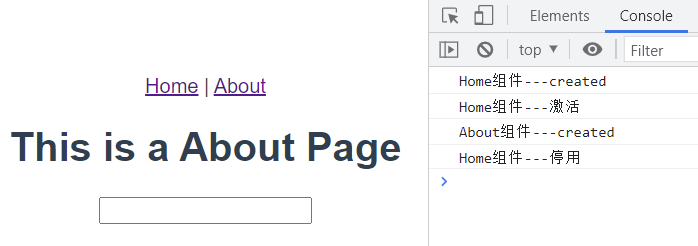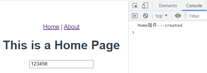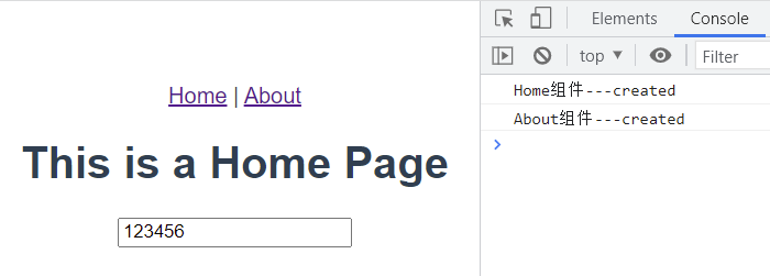 接着,我们在组件Home中输入123456,然后切换到About组件