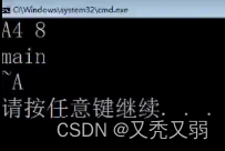 class A{ public: A(int i=4,int j=8):m_i(i),m_j(j) { cout<<"A"<<m_i<<" "<<m_j<<endl; } ~A() { cout<<"~A"<<m_i<<" "<<m_j<<endl; } private: int m_i; int m_j; } void main() { A a; cout<<"main"<<endl; }代码说明: