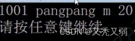 class Student { public: Student(int num=1001,char *name="baobao",char sex='f',int age=20);//含参的构造函数 void Print(); prvate: int m_num;//编号 char *m_name;//姓名 char m_sex;//性别 int m_age;//年龄 } //冒号语法进行初始化 Student::Student(int num,char* name,char sex,int age):m_num(num),m_name(name),m_sex(sex),m_age(age) //在public处声明时写了默认值,定义时就不用再写啦 { } void Student::Print() { cout<<m_num<<" "<<m_name<<" "<<m_sex<<" "<<m_age<<endl; } void main() { Student s(1001,"pangpang",'m',20); s.print(); }- 代码说明: