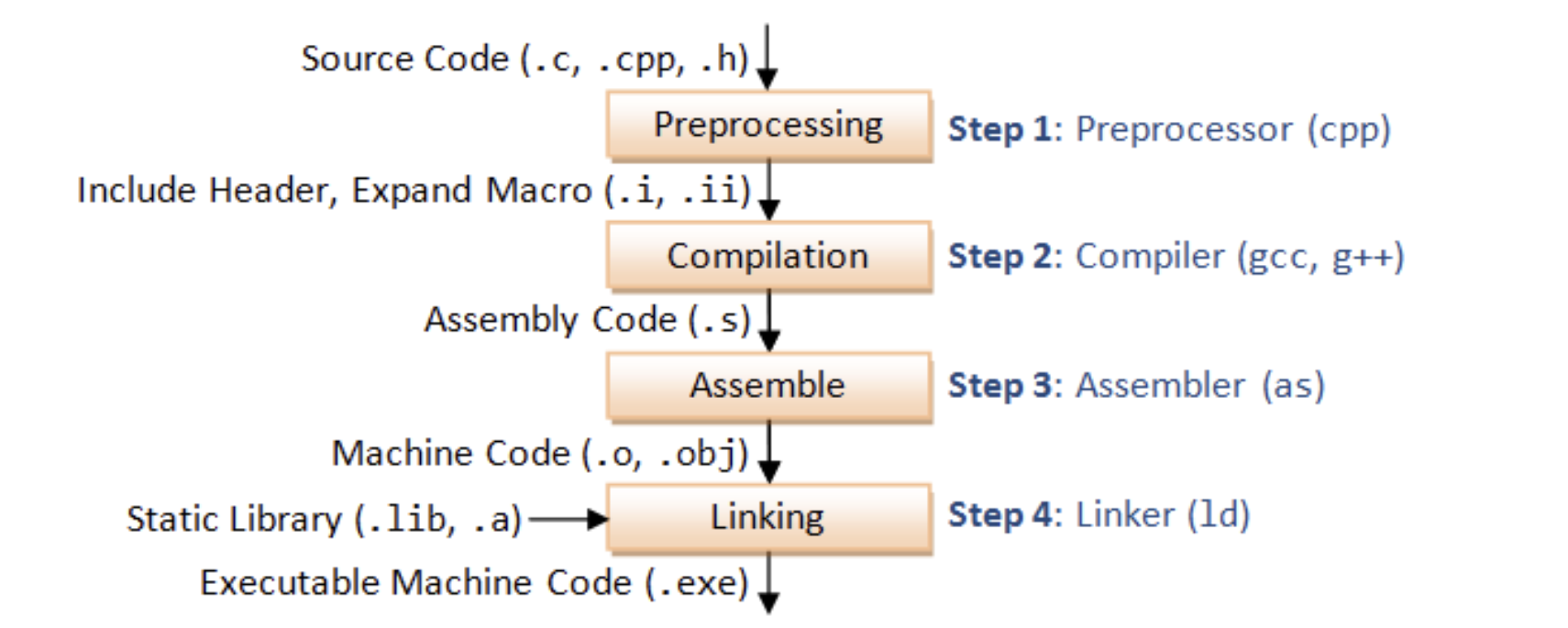 C文件从源文件到可执行文件大致要经历四个阶段: