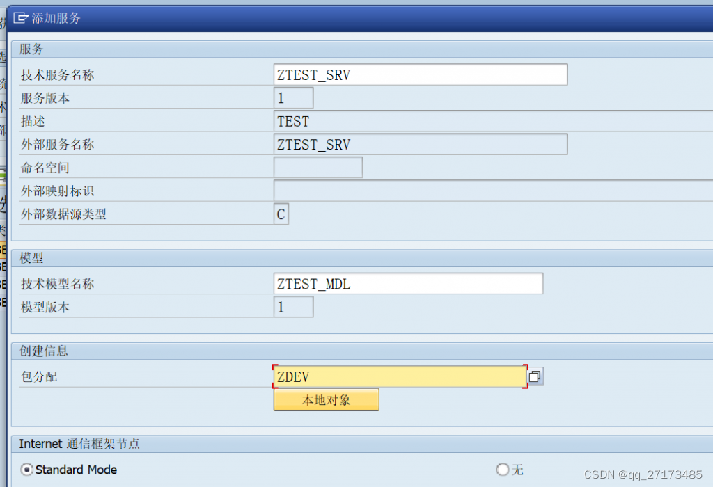 在此输入系统别名:LOCAL,技术服务名称,输入前面SEGW创建的工程名:ZTEST*(或者CDS名称),找到