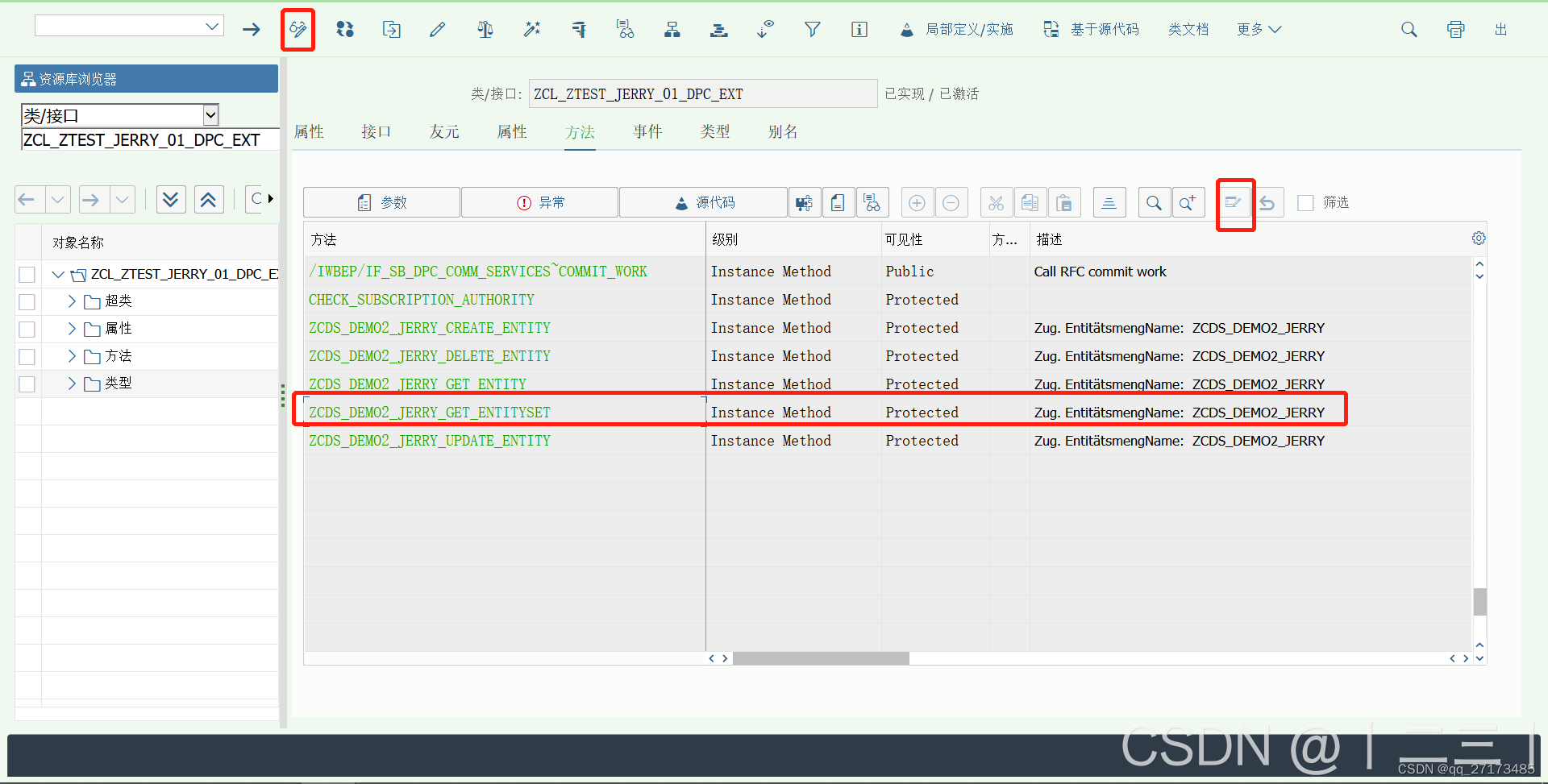 激活ODATA项目工程,点击“Generate Runtime Objects”,此步骤,一定要先选择工程项目(ZTEST),否则激活时会报错的。成功后如图。