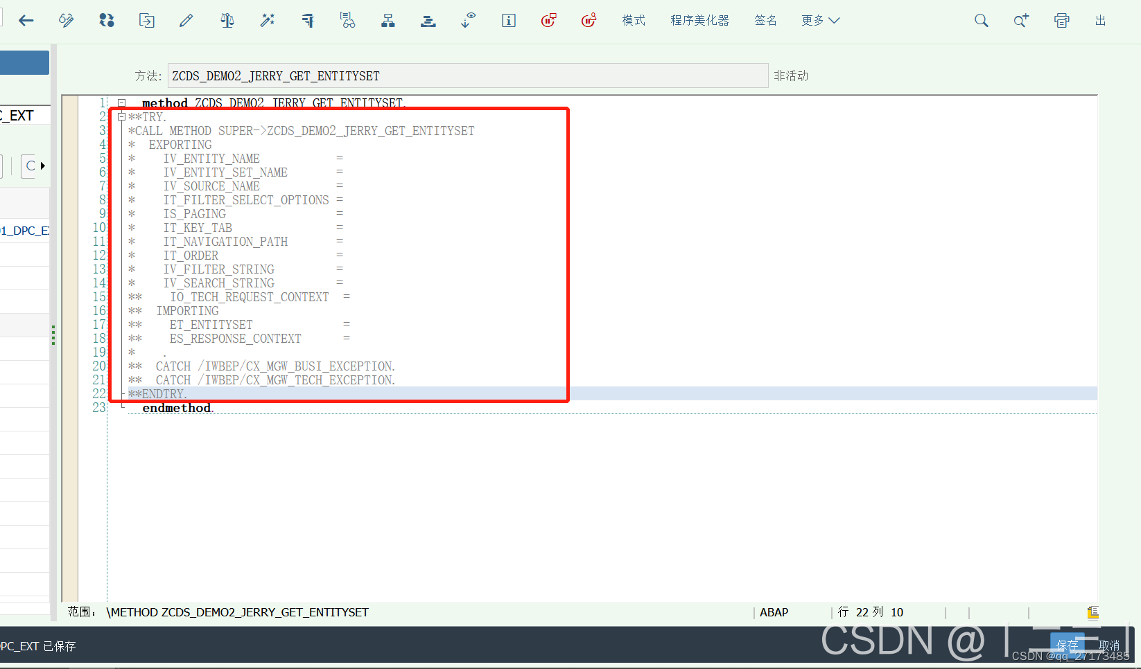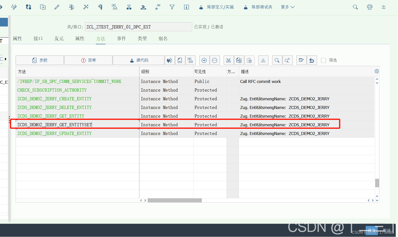 然后返回到上一页面,选择get_entityset,点击左上角更改,然后点击重新定义方法