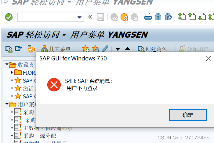 运行事务码:/IWFND/MAINT_SERVICE 打开激活服务功能,如运行此事务码报错:“用户不能再登陆”,如图。可以在此事务码前面加/n,也就是:/N/IWFND/MAINT_SERVICE 来打开,或者直接在SE93中打开,或者把此事务码添加到收藏菜单中,就不会报错了。
