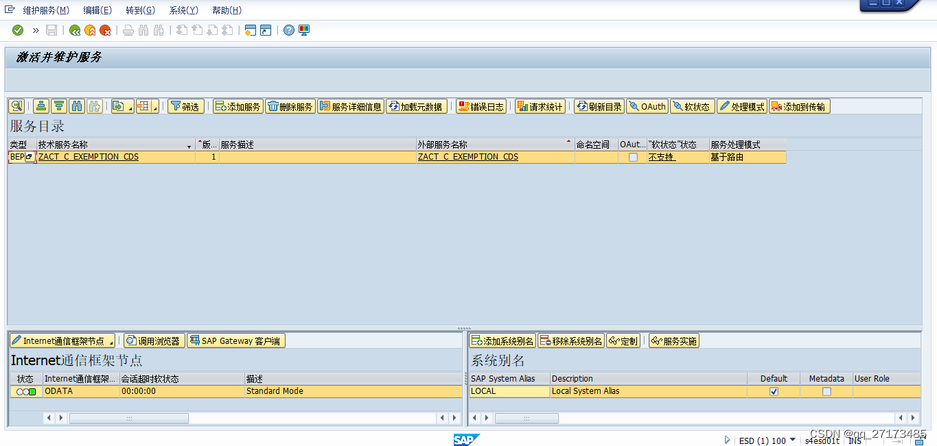 先删除“系统别名”,然后再删除“ Internet 通信框架 ”,最后就能正常的删除ODATA的服务了。