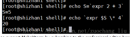 echo `expr \`expr 2 + 3\` \* 4`