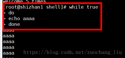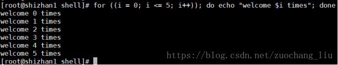 for ((i = 0; i <= 5; i++)); do echo "welcome $i times"; done