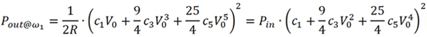由公式可知,当输入信号较小时,基频信号的输出功率与输入功率呈现近似线性的关系。