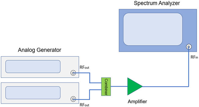 图3. 采用两台信号源测试三阶交调失真的连接示意图