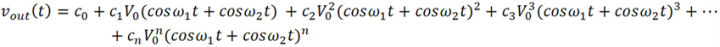那么三阶交调失真是否只有泰勒级数展开中的三阶项产生呢?实际上,除了三阶项会产生外,五阶、七阶等奇数高阶项也可以产生,只是阶数越高,贡献越少。