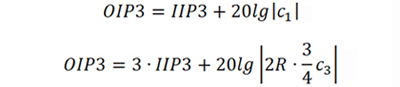 二者的交点意味着两个信号的输出功率相同,假设IP3对应的输入、输出功率分别为IIP3和OIP3,代入上式为