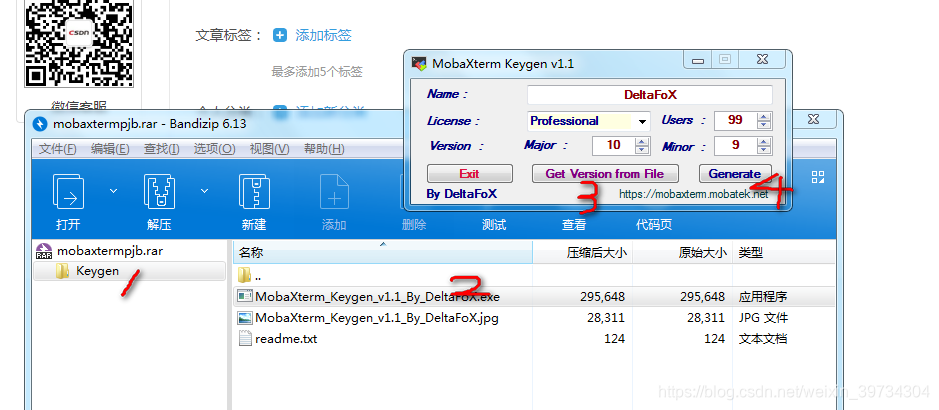 意思是打开keygen目录, 点击 "Get Version from File" and choose MobaXterm.exe,然后再点击 "Generate",