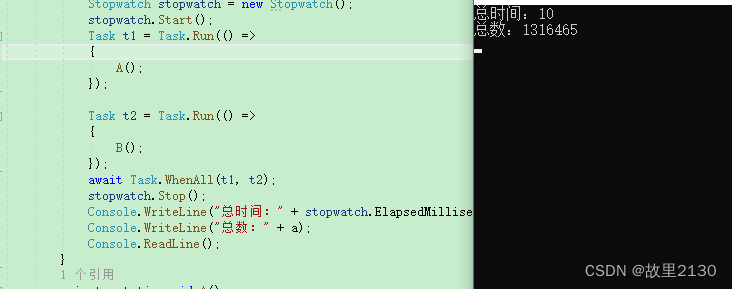 Console.WriteLine("总时间:" + stopwatch.ElapsedMilliseconds);