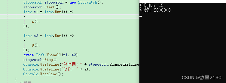 当我们在第1步,只需要增加一句话,不增加lock和SemaphoreSlim,依然可以使得计算的结果准确,那就是增加