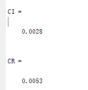 RI=[0 0 0.52 0.89 1.12 1.26 1.36 1.41 1.46 1.49 1.52 1.54 1.56 1.58 1.59]; %注意哦,这里的RI最多支持 n = 15