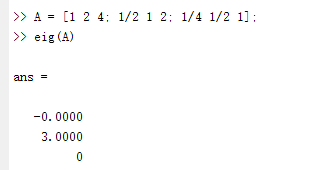 [V,D] = eig(A) %V是特征向量, D是由特征值构成的对角矩阵(除了对角线元素外,其余位置元素全为0)