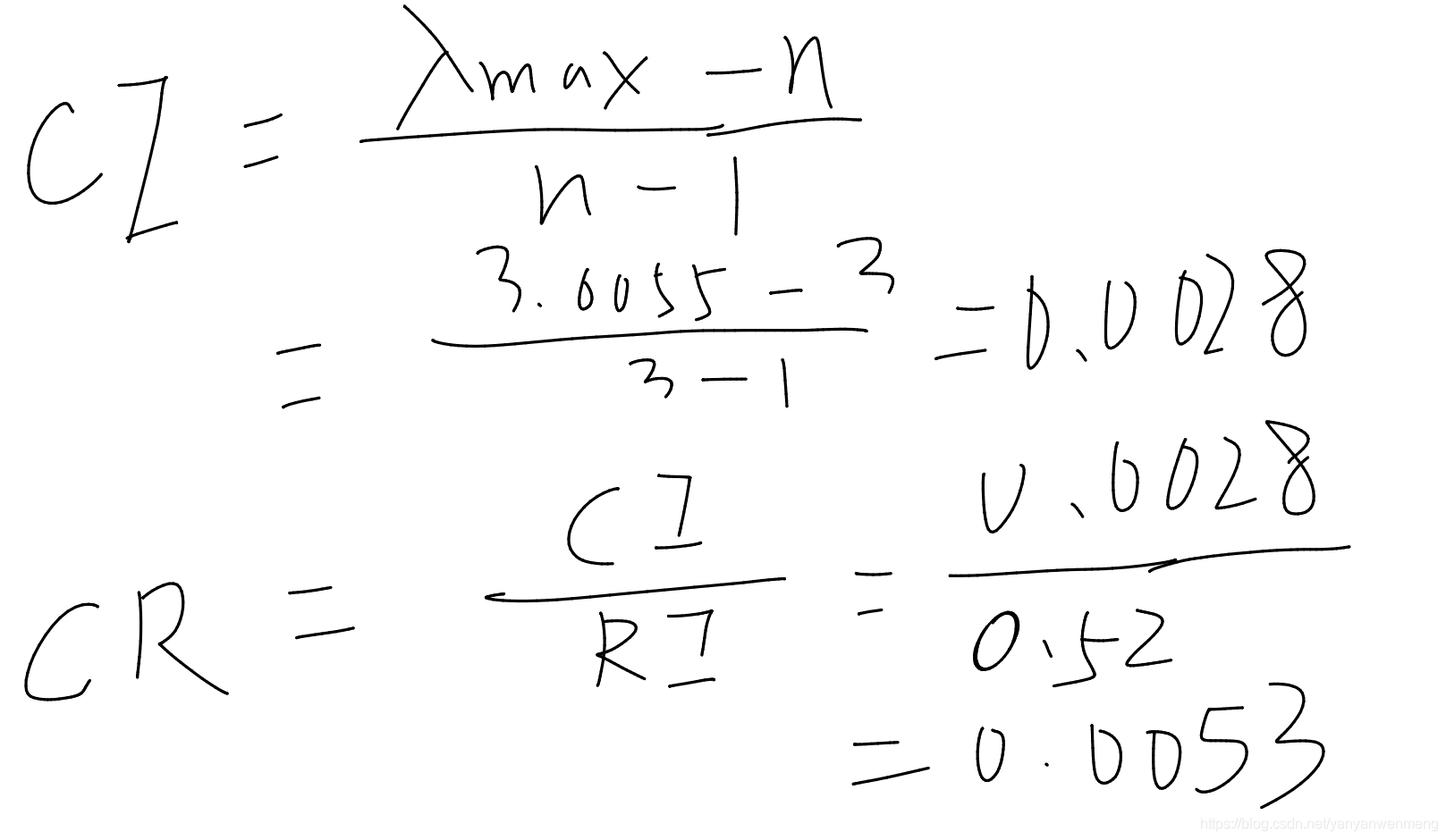 CR = 0.0053 < 0.1 ,说明此矩阵的一致性可以接受。
