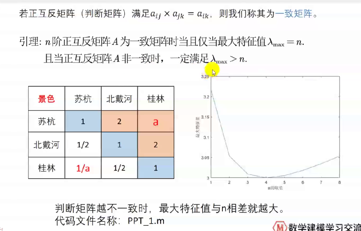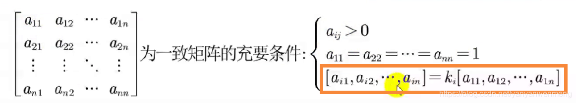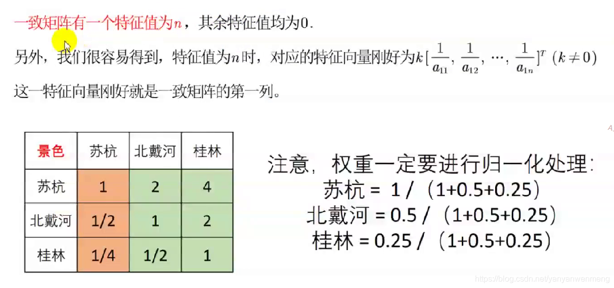 【注意】 不一定要达到绝对的一致矩阵,只需要一致性不要偏差太大,不然矛盾很多,我们填写的判断矩阵就没有任何意义了。