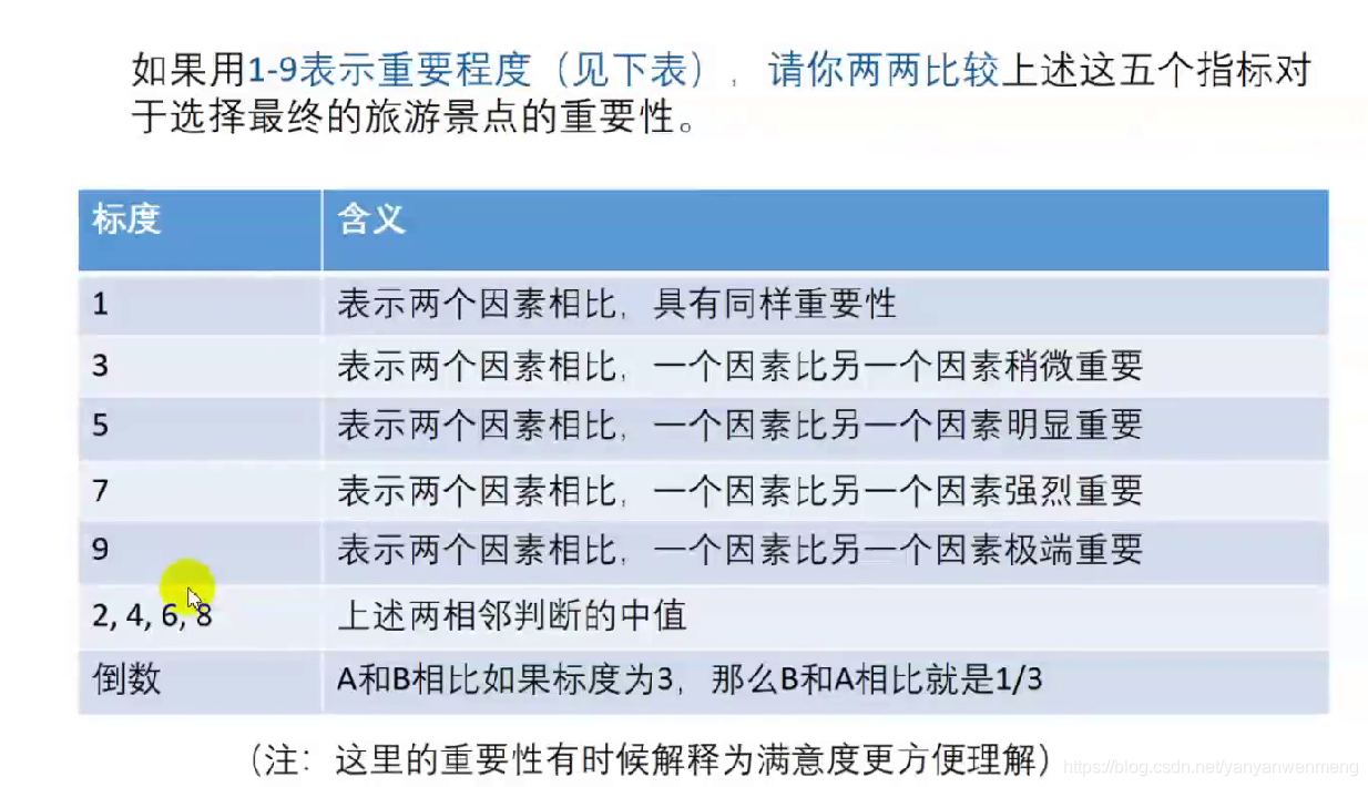 【注意】层次分析法的判断矩阵(上面这张表)实际需要给专家填写。