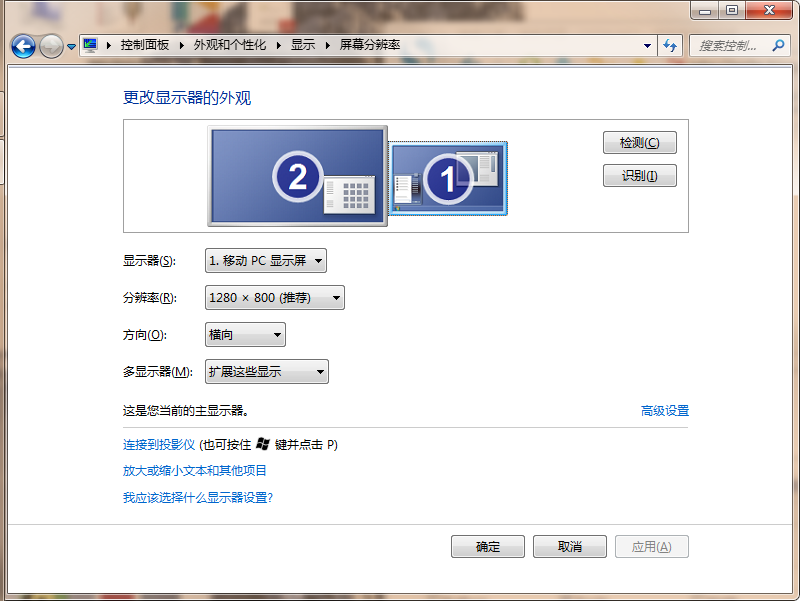 一:首先将投影设置为“扩展模式”: