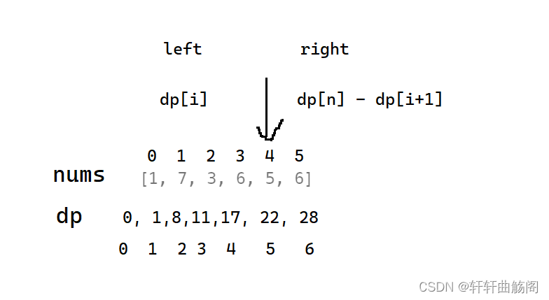 for (int i = 1; i <= n; i++) dp[i] = dp[i-1] + nums[i-1];