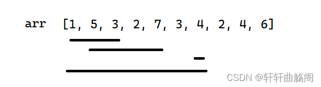 我们稍加分析可以发现,如果我们使用暴力解法(将区间内所有数字相加)时间复杂度为O(q*N),在这里我们可以使用前缀和的算法,来使每次访问的时间复杂度降低到O(1),在这里我们要提前预备好一个dp数组,dp[i]表示从下标1开始到下标i的数值和,dp[i] = dp[i-1] + arr[i],这样填完dp表后,[l, r]的数值和sum = dp[r] - dp[l-1],此外在这里有一个细节需要我们注意:下标为什么是从1开始的?——假如要计算[0, 2]的话,我们需要使用dp[2] - dp[-1],这样就会带来不便。