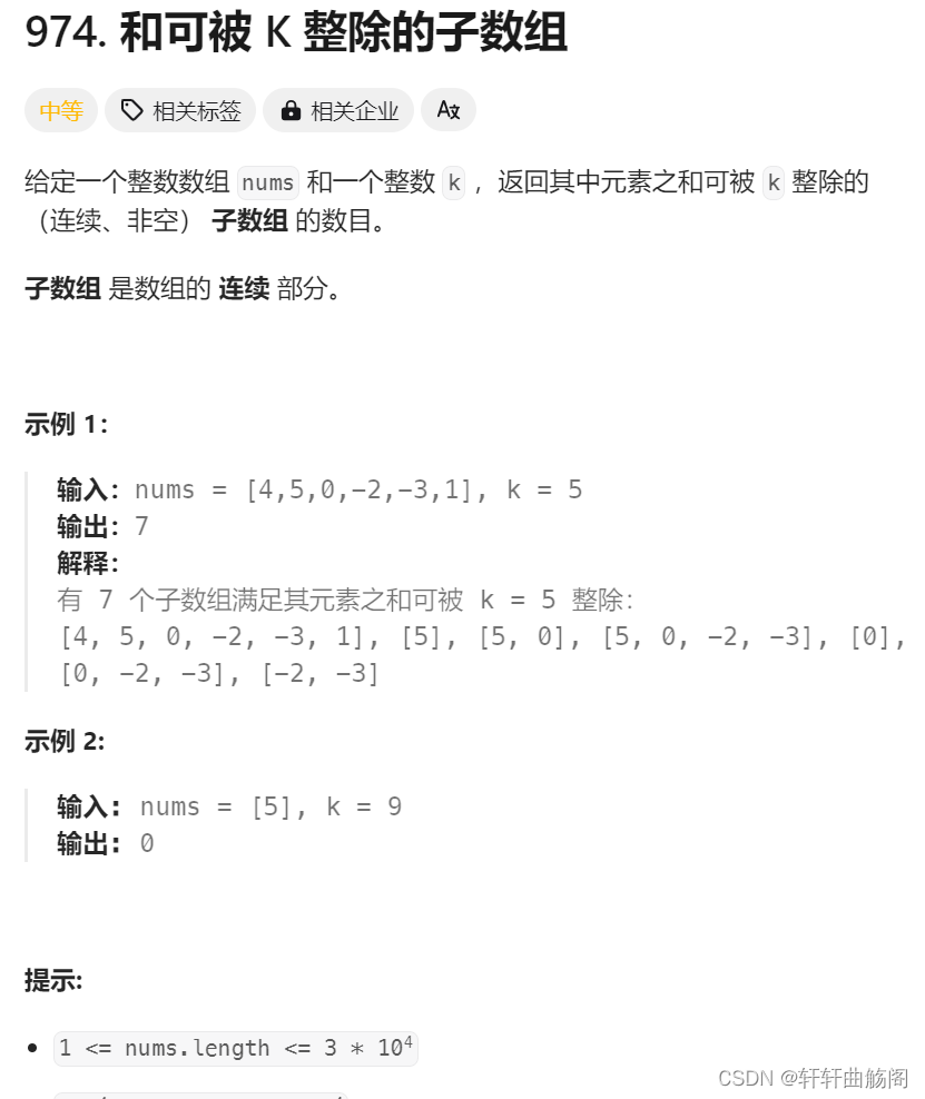 题目链接:974. 和可被 K 整除的子数组 - 力扣(LeetCode)