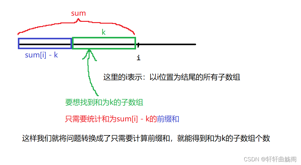 // 只要sumi-k存在,说明该位置到i位置的和为k