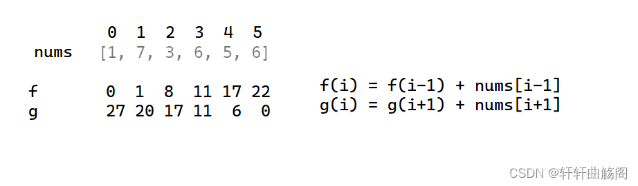 for (int i = n - 2; i >= 0; i--) g[i] = g[i + 1] + nums[i + 1];