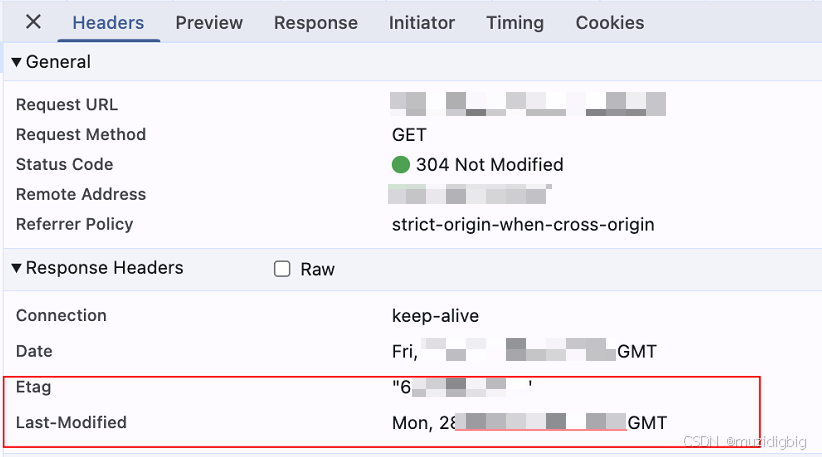 3、服务器再次收到资源请求时,根据浏览器传过来If-Modified-Since和资源在服务器上的最后修改时间判断资源是否有变化,如果没有变化则返回304 Not Modified,但是不会返回资源内容,如果有变化则返回200 ok返回资源内容;当服务器返回304 Not Modified的响应时,response header中不会再添加Last-Modified的header,因为资源没有变化,Last-Modified的值也不变
