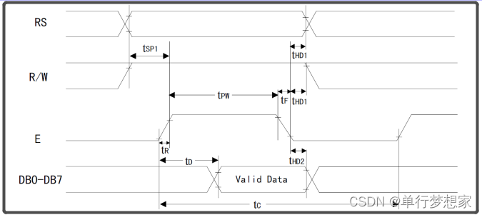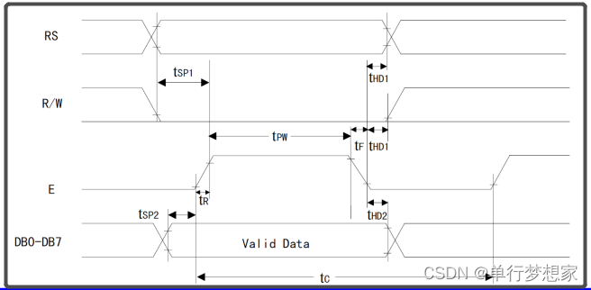 第 6 脚:E 端为使能端,当 E 端由高电平跳变成低电平时,液晶模块执行命令。