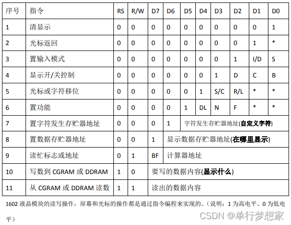 指令 3:光标和显示模式设置。I/D:光标移动方向,高电平右移,低电平左移。实际上就是控制 从左到右写入还是从右至左的写入顺序。S:屏幕上所有文字是否左移或者右 移。高电平 表示有效,低电平则无效。S=1 当写一个字符,整屏显示左移(ID=1)或 者右移(I/D=0),以 得到光标不移动而屏幕移动的效果。S=0 当写一个字符,整屏显示不移动。