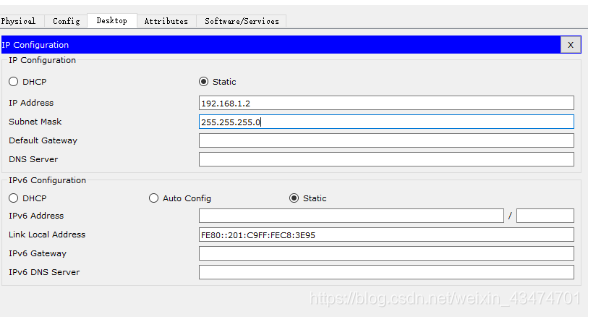 然后点击第二台电脑,设置其IP,与交换机的IP在同一网段。