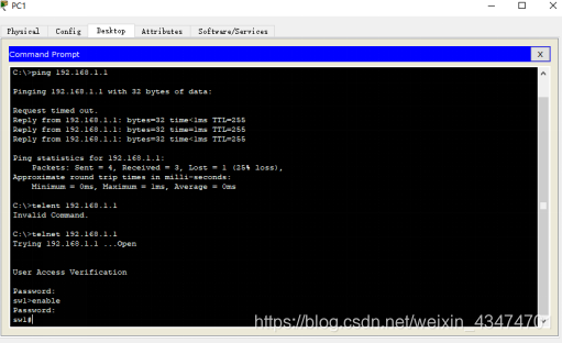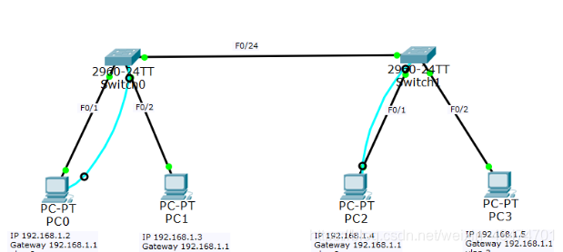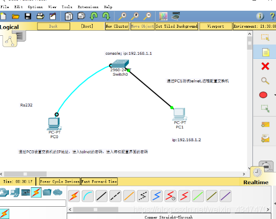 实验内容二:利用Packet Tracer测试telnet,远程管理交换机 1,打开Packet Tracer,如下操作: