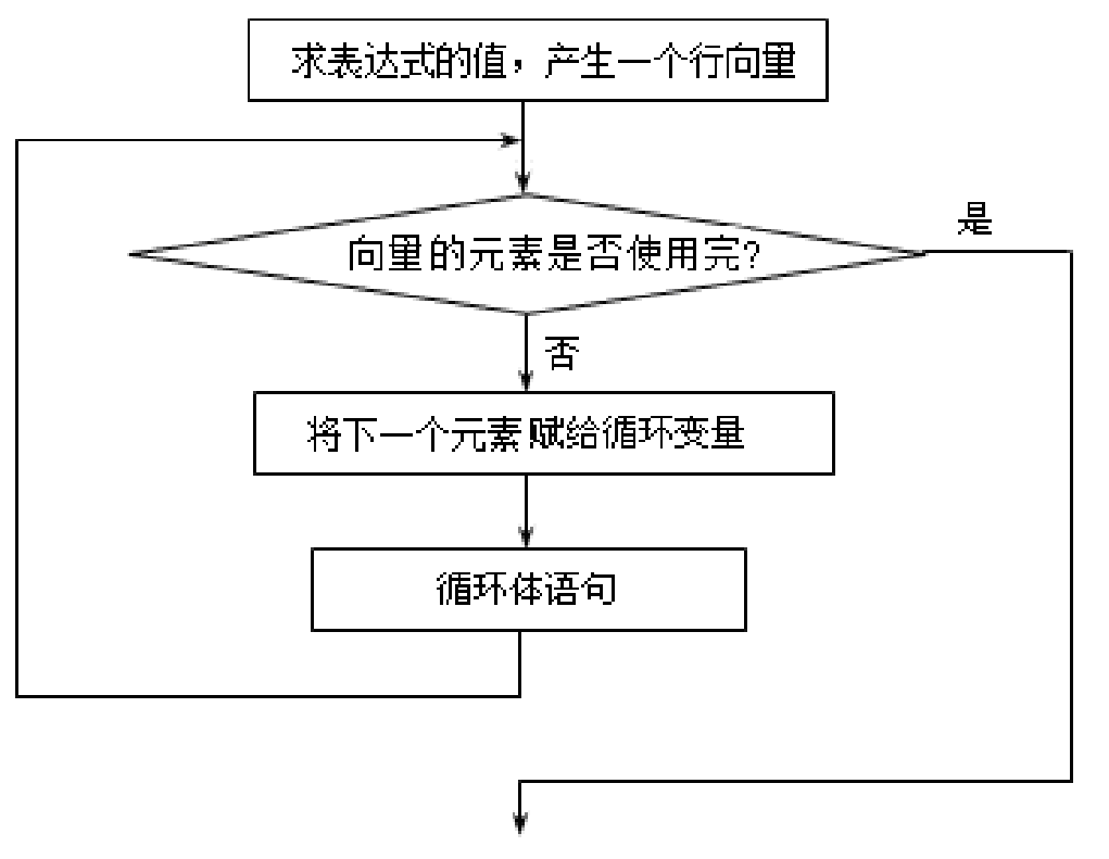 执行过程是依次将矩阵的各列元素赋给循环变量,然后执行循环体语句,直至各列元素处理完毕。