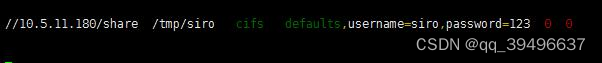 //10.5.11.180/share /tmp/siro cifs defaults,username=siro,password=123 0 0