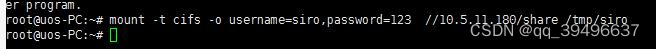 mount -t cifs -o username=siro,password=123 //10.5.11.180/share /tmp/siro