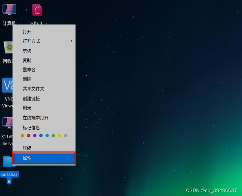 UOS 文件默认权限是其他用户只读,如果想让其他用户访问共享文件的时候, 可以修改共享文件,则可以右键单击需要共享的文件,选择属性,把其他用户权