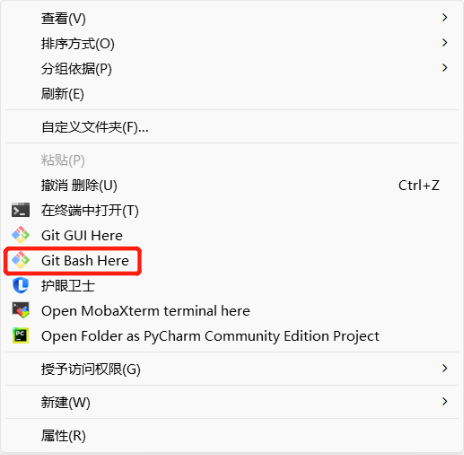 在项目目录下,右键选择“Git Bash Here”,进入 Git Bash 的命令行页面: