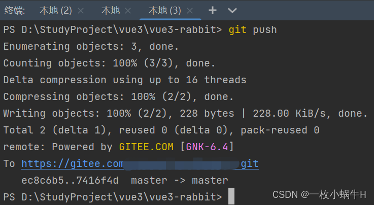 已经强行推送覆盖成功(可以看出来"git push"会提示版本较旧)