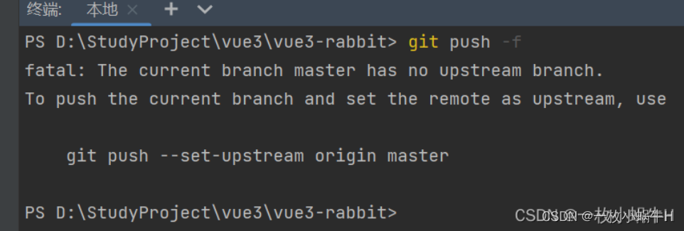 这个报错无关影响:(fatal: 当前分值 master 没有对应的上游分支。为推送当前分支并建立与远程上游的跟踪,使用 git push --set-upstream origin master)