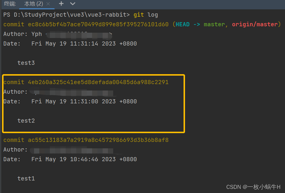 git revert是用于“反做”某一个版本,以达到撤销该版本的修改的目的。比如,我们commit了三个版本(版本一、版本二、 版本三),突然发现版本二不行(如:有bug),想要撤销版本二,但又不想影响撤销版本三的提交,就可以用 git revert 命令来反做版本二,生成新的版本四,这个版本四里会保留版本三的东西,但撤销了版本二的东西(test2)