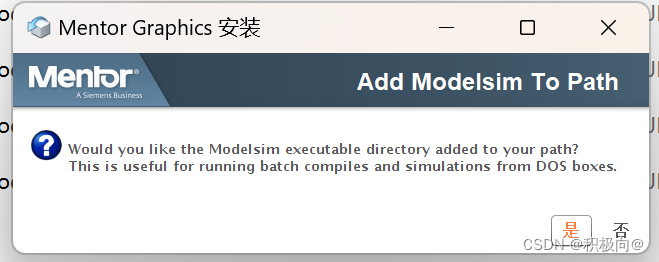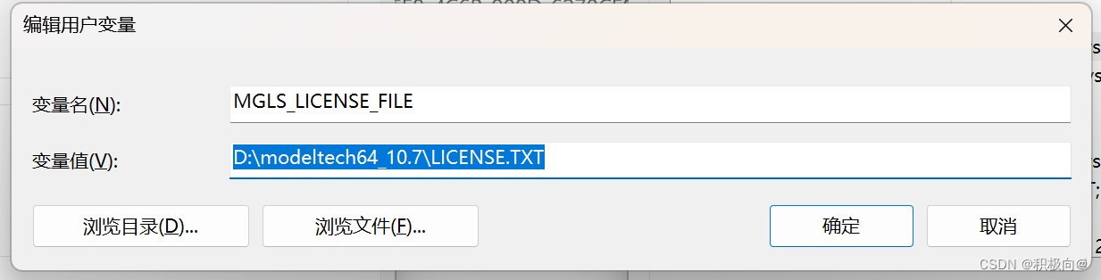 12、在win64文件下,找到patch64_dll.bat,双击之后,在弹出的页面中选择“是”,待“LICENSE”记事本弹出,点击“文件->另存为”,保存路径,保存到安装路径下;13、然后配置环境变量,win11点击设置-系统-高级系统设置-环境变量-用户变量下的;14、点击图标,打开modelsim后出现以下界面,则破解成功;9、出现以下界面,表示安装成功,点击完成。3、 选择安装路径,尽量