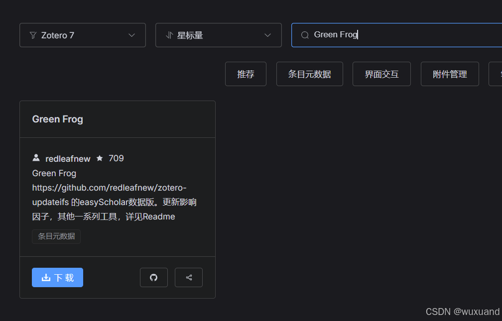 1:进入Zotero 插件商店 | Zotero 中文社区 (zotero-chinese.com),下载插件Green Frog。