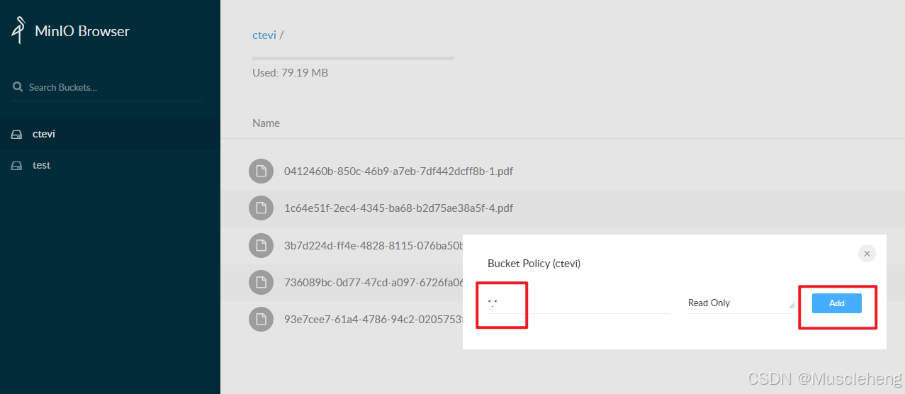 登录控制台后,点击左边菜单栏对应的桶,点击【Edit Policy】, 输入:*.* 然后点击【add】即可完成添加。