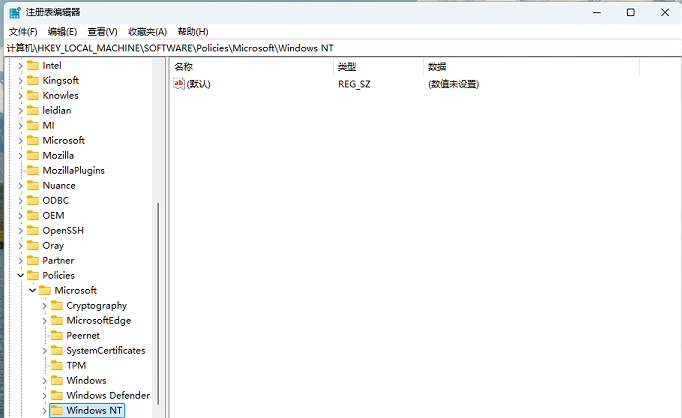 2.找到如下路径:HKEY_LOCAL_MACHINE\SOFTWARE\Policies\Microsoft\Windows NT\