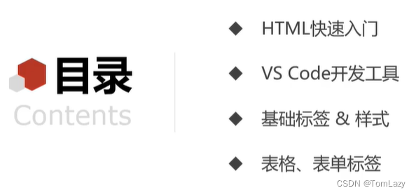 HTML快速入门,内容包括:基础标签与样式(标题、超链接、正文、表格、表单、表单项)等。